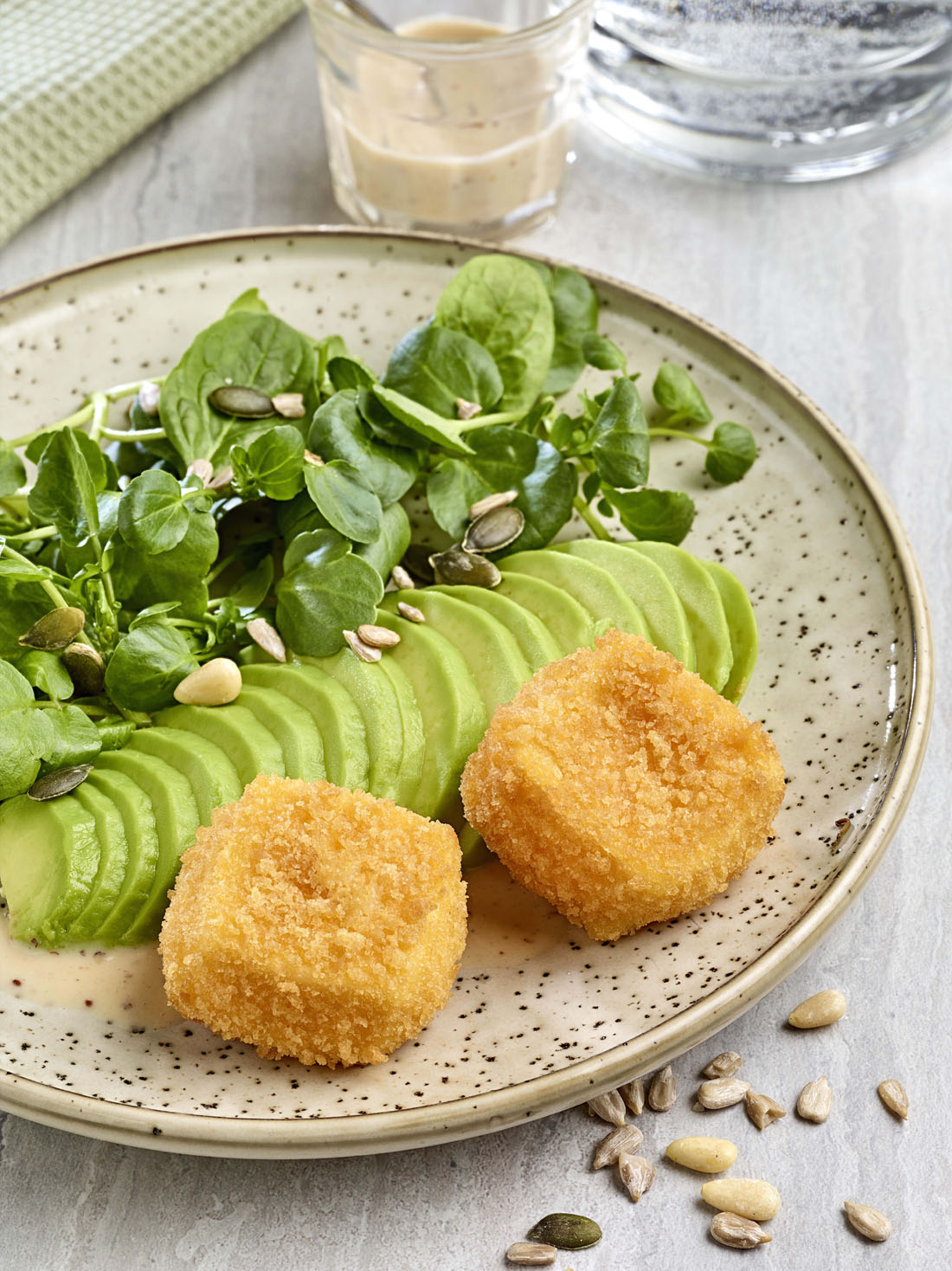 Try the ready-to-bake Mini Pavés, soft cheese that melts inside a coating of crunchy breadcrumbs making preparing something for a meal quick and easy.