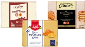 Le beurre de tourage est un beurre texturé, dont le procédé de fabrication diffère d’un beurre standard. Grâce à une technologie de texturation innovante, la cristallisation du beurre est maîtrisée pour offrir une plasticité optimale, idéale pour le tourage et le feuilletage des viennoiseries et pâtisseries. Ce beurre garantit une qualité régulière toute l’année, un feuilletage croustillant et un goût de beurre authentique, très recherché par les artisans et industriels de la BVP. Il est proposé en plaques de 2 kg et cubes de 5, 10 ou 25 kg, en version conventionnelle ou AOP, sous les marques Grand Fermage, La Viette et La Conviette.