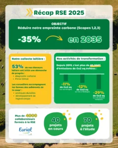 Inscrit dans le plan climat d’Agrial, notre objectif est de réduire notre empreinte carbone de 35% d’ici 2035 sur l’ensemble de nos activités (Scopes 1-2-3).